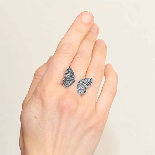 Adjustable Dimensional Butterfly Wings Ring -Bronze