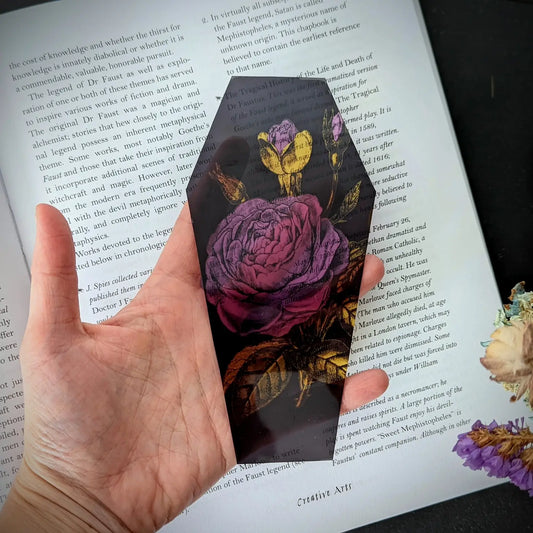 Clear Bookmark - Purple Yellow Floral Flowers Coffin Gothic